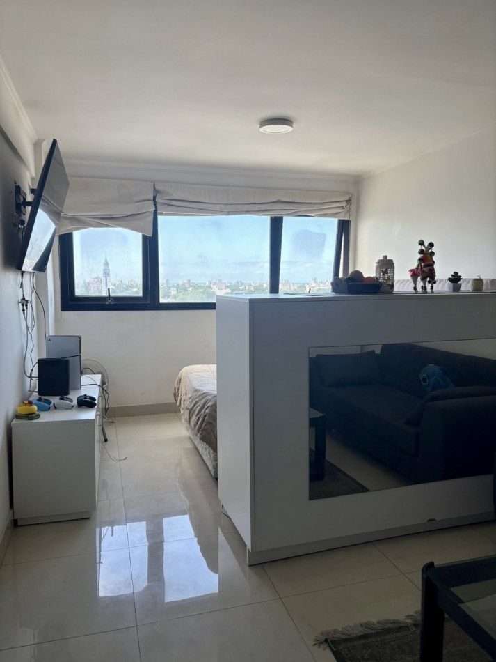 Ambiente amplio y luminoso, con cocina integrada, baño completo y ventanal al frente que aporta muy buena luz natural.